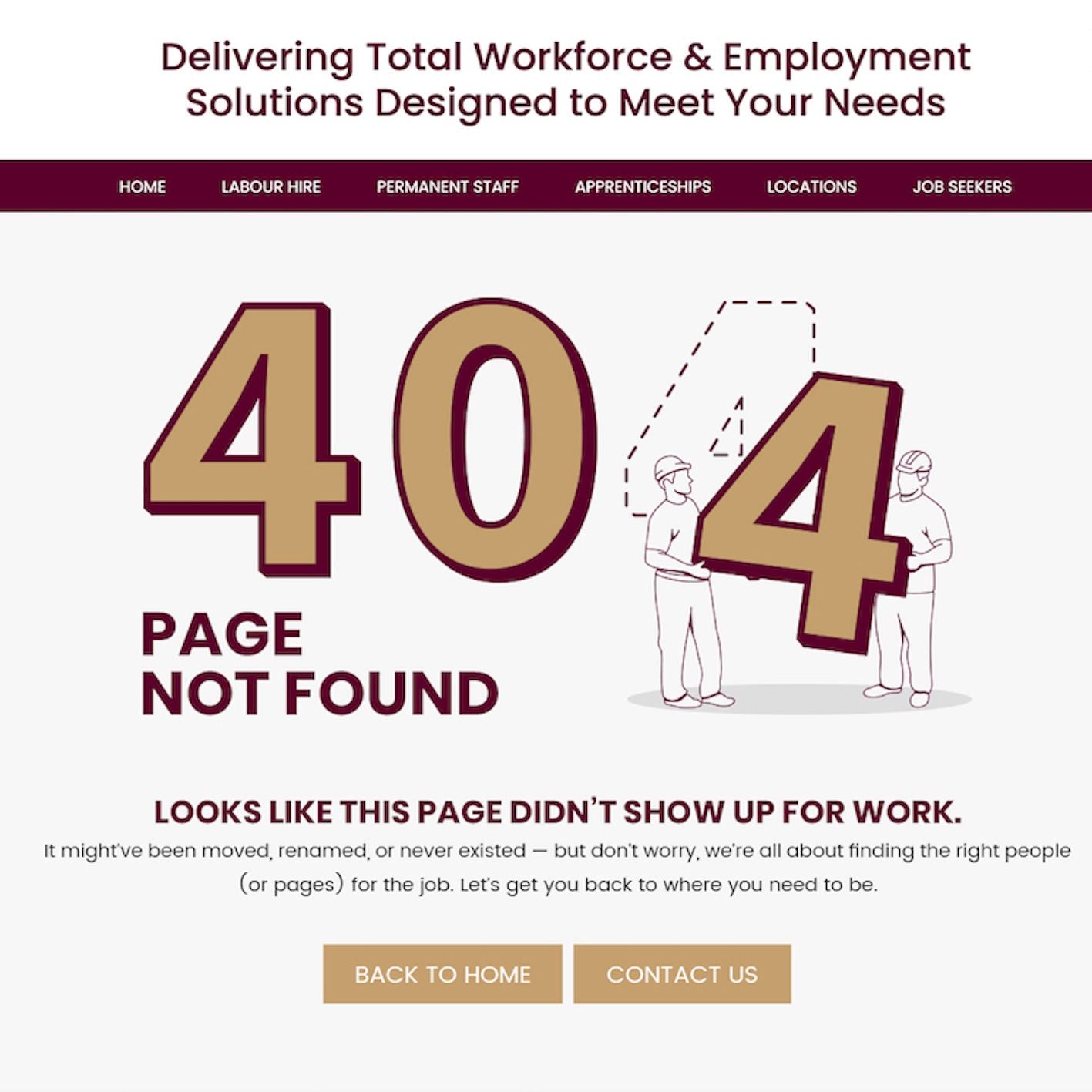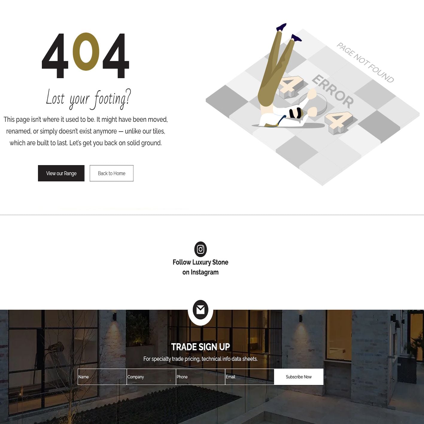 We’ve created custom 404 pages for a range of businesses — each designed to match their brand, provide helpful links, and delight their audience just a little bit along the way. From playful illustrations to calming “Oops, something’s missing” messages — our team tailors each 404 page to suit the business, their audience, and how they want to be seen.