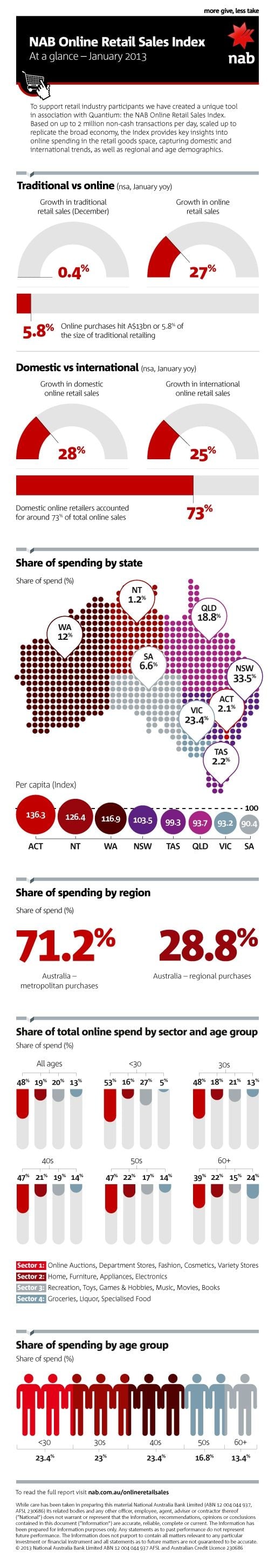 Latest NAB research has found that online retail sales rose to an estimated $13 billion in the year to January 2013.
